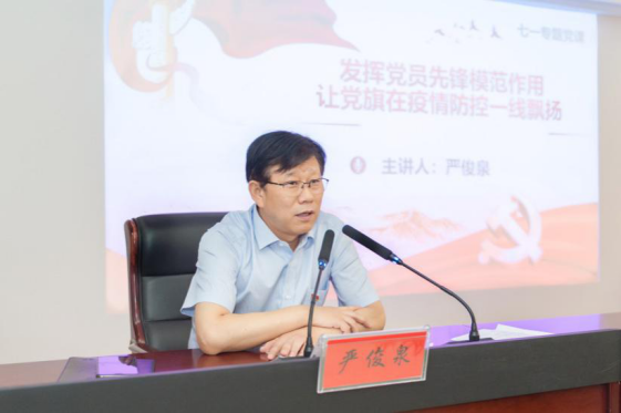 6月30日上午,城控集團(tuán)黨委委員、總工程師嚴(yán)俊泉以《發(fā)揮黨員先鋒模范作用,讓黨旗在疫情一線飄揚(yáng)》為題,在長江水務(wù)講授專題黨課。長江水務(wù)黨委副書記主持黨課,長江水務(wù)黨委班子成員、各黨支部書記、黨員代表和入黨積極分子參加本次學(xué)習(xí)。