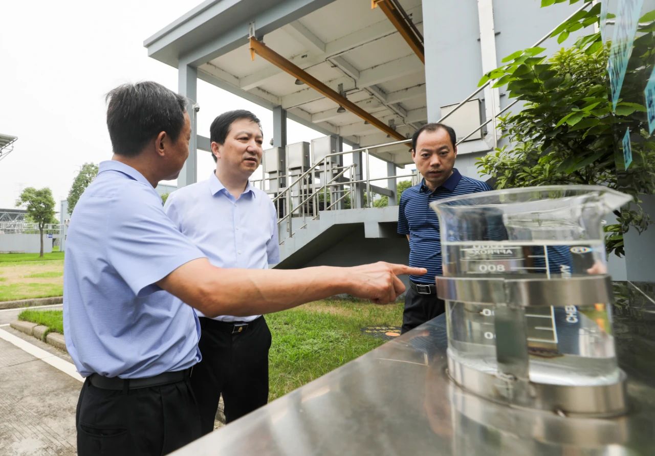 在六圩污水處理廠,夏正東實地察看了出水泵房、光伏電站等生產區(qū)域,詳細了解企業(yè)項目運營、污水管網現狀、廠區(qū)運行調控、綠色循環(huán)經濟產業(yè)鏈等情況。