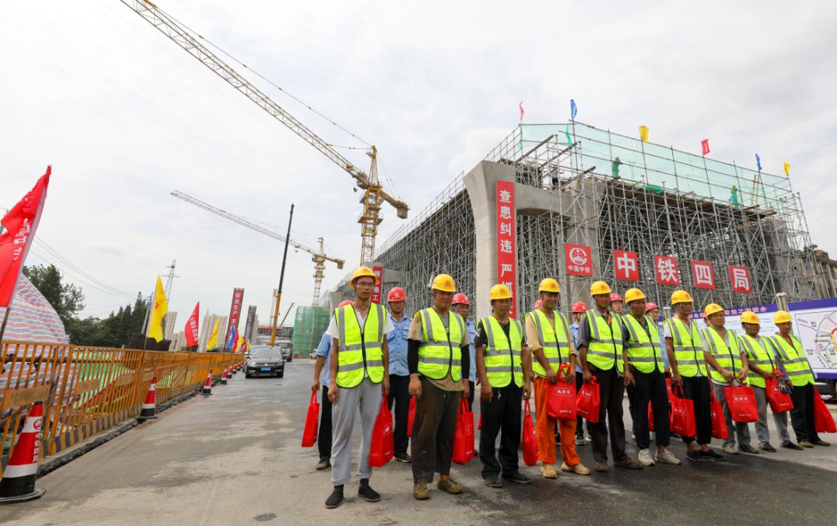 8月6日上午,市人大常委會(huì)副主任、市總工會(huì)主席楊正福一行來(lái)到運(yùn)河南北路快速化改造工程施工現(xiàn)場(chǎng),看望慰問(wèn)奮戰(zhàn)在重點(diǎn)工程施工一線的建設(shè)者們,拉開(kāi)了揚(yáng)州市總工會(huì)以“清涼一夏‘送安康’、聚力奪取‘雙勝利’”為主題的夏季安康“三送”(送清涼、送安全、送法律)活動(dòng)序幕。城控集團(tuán)黨委書(shū)記、董事長(zhǎng)葉善祥,市總工會(huì)副主席韓士軍,城控集團(tuán)副總經(jīng)理季紅軍參加活動(dòng)。