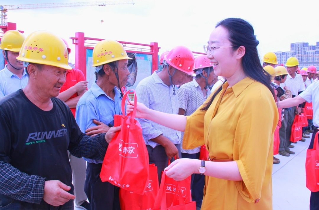 洪慧娟深入施工現(xiàn)場,仔細察看了施工環(huán)境,詳細了解了工程進度,親切詢問了職工們的作息時間,對大家頂烈日冒酷暑地辛勤工作和項目部各類嚴謹可行的高溫保障措施表示高度贊揚,并為他們送上了花露水、毛巾等解暑降溫的慰問物資。
