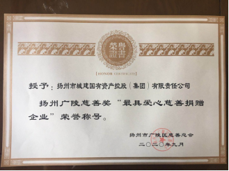 9月5日,在廣陵區(qū)舉辦的“向上向善?一路有你”公益慈善演出活動上頒發(fā)了“廣陵慈善獎”獎項,城控集團(tuán)被授予“最具愛心慈善捐贈企業(yè)”榮譽(yù)稱號。城控集團(tuán)黨委書記、董事長葉善祥應(yīng)邀出席。