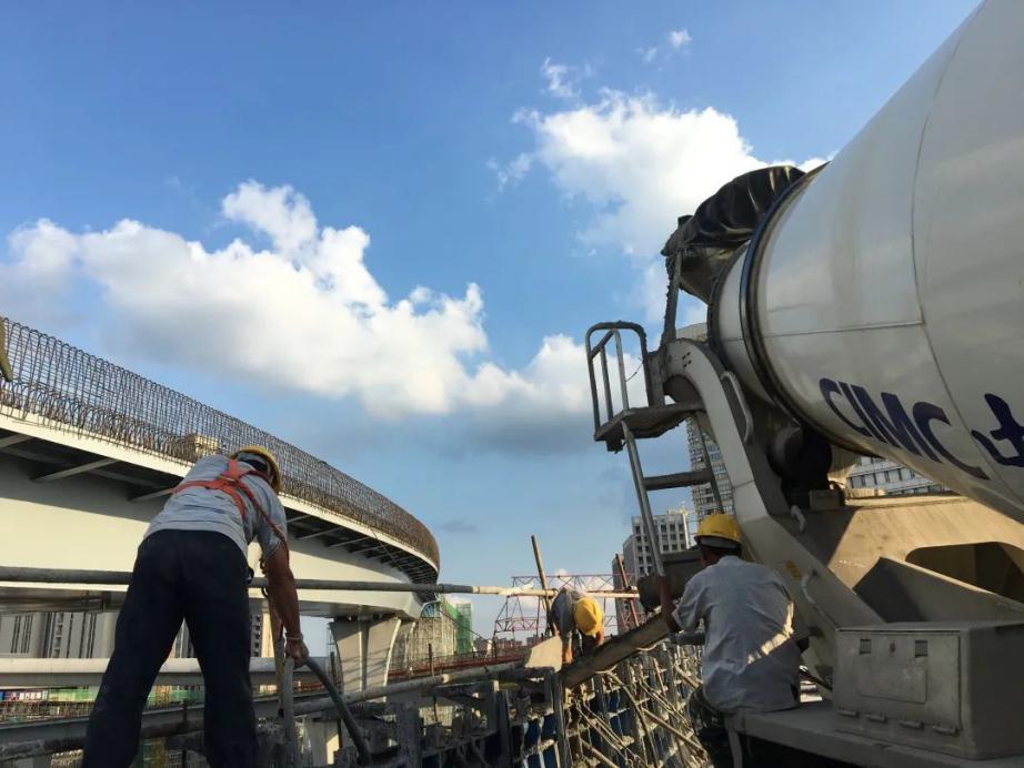 自防撞護欄施工以來,項目部多措并舉,綜合管控現(xiàn)場施工安全及質(zhì)量,保證橋面系及防撞護欄施工穩(wěn)步推進。面對防撞護欄施工圓曲線半徑較小、鋼筋預(yù)埋準確度控制難度大、鋼筋線型調(diào)整難度大等難題,從測量放線、立模校正到澆筑砼,全程設(shè)專人盯控,嚴格“三檢”制度,堅持“樣板引路”,抓好質(zhì)量管控。同時,多次組織召開防撞護欄“回頭看”等專題會議,不斷總結(jié)經(jīng)驗、優(yōu)化施工方案,平穩(wěn)有序推進施工進度。