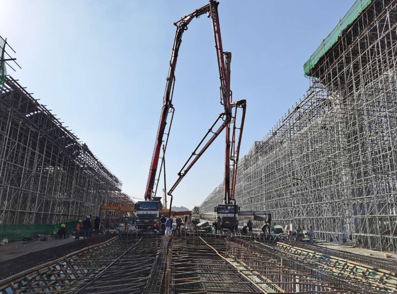 為保證項(xiàng)目工期,項(xiàng)目部統(tǒng)籌兼顧,積極謀劃,在保證橋面附屬工程施工的同時(shí),也保證了箱梁施工工作的穩(wěn)步推進(jìn)。每一次澆筑前,對(duì)施工班組進(jìn)行質(zhì)量安全技術(shù)交底,嚴(yán)格過(guò)程控制和工序銜接,確保工程質(zhì)量;現(xiàn)場(chǎng)施工嚴(yán)格按照專項(xiàng)方案,現(xiàn)場(chǎng)技術(shù)負(fù)責(zé)人對(duì)每道工序進(jìn)行嚴(yán)格審核,牢牢把關(guān),以“高標(biāo)準(zhǔn),嚴(yán)要求”進(jìn)行每道工序的驗(yàn)收;項(xiàng)目成立黨員先鋒隊(duì)和青年突擊隊(duì),黨員領(lǐng)導(dǎo)干部沖鋒在前,全體參建人員迎難而上,緊盯節(jié)點(diǎn),細(xì)化措施,落實(shí)責(zé)任,強(qiáng)力推動(dòng)工程順利進(jìn)展;同時(shí),現(xiàn)場(chǎng)施工人員積極主動(dòng)爭(zhēng)取一切有利條件,攻堅(jiān)克難,搶抓時(shí)機(jī),多措并舉,合理配置資源,全力保障每一聯(lián)現(xiàn)澆箱梁的順利澆筑。此次主線現(xiàn)澆箱梁的澆筑完成,為項(xiàng)目全面進(jìn)入附屬工程施工、完成整體目標(biāo)任務(wù)奠定了堅(jiān)實(shí)的基礎(chǔ)。截止日前,工程全部66聯(lián)現(xiàn)澆箱梁,已澆筑61聯(lián);支架已全部搭設(shè)完成;附屬工程防撞護(hù)欄已完成9800米,完成64.1%;橋面鋪裝已完成48聯(lián),完成64%;正在進(jìn)行瀝青攤鋪準(zhǔn)備工作,各工序施工正穩(wěn)步推進(jìn)中。