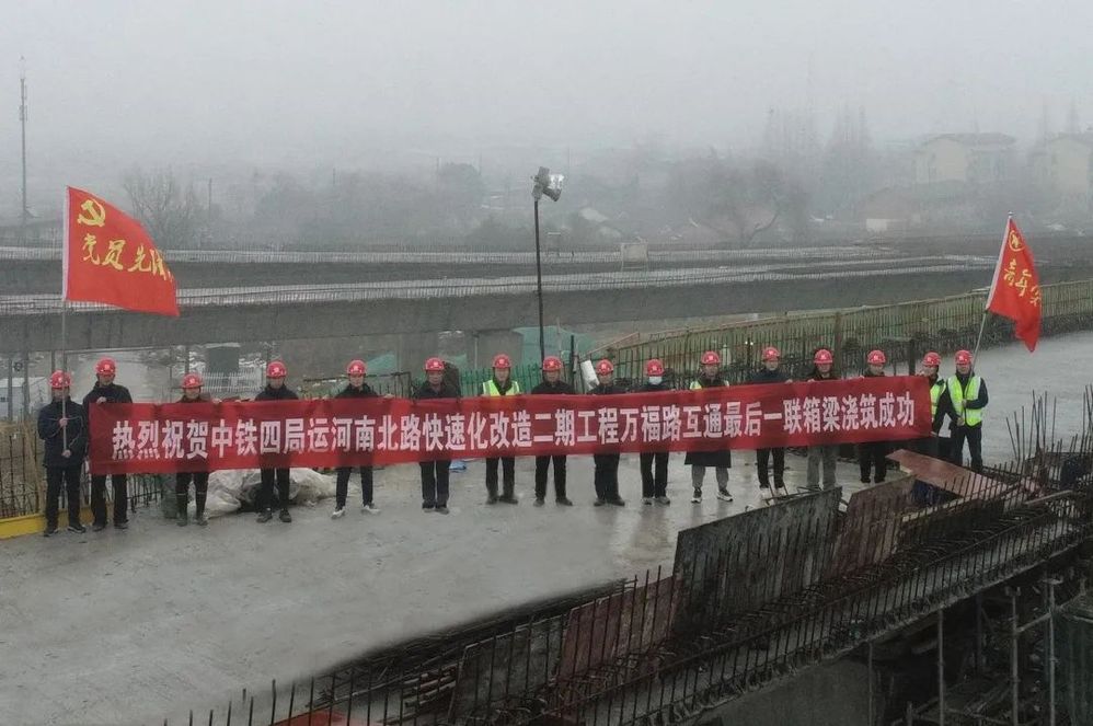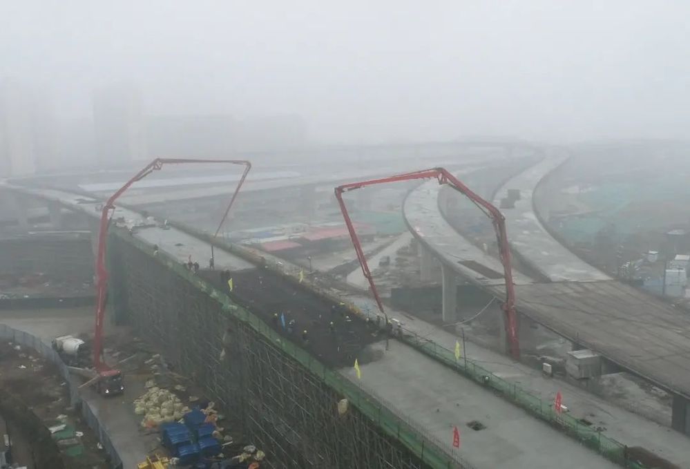 1月26日17:50,經(jīng)過(guò)近6小時(shí)連續(xù)作業(yè),萬(wàn)福路互通C匝道第7聯(lián)現(xiàn)澆箱梁頂板混凝土順利澆筑完成,標(biāo)志著運(yùn)河南北路快速化改造二期工程(萬(wàn)福西路—物港路北)互通區(qū)域現(xiàn)澆箱梁施工圓滿完成收官之戰(zhàn)。