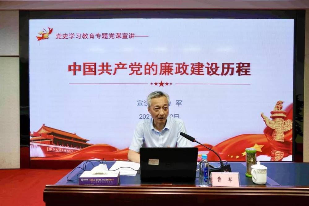 曹軍以《中國共產(chǎn)黨的廉政建設(shè)歷程》為題,從新民主主義革命時(shí)期的廉政建設(shè)、社會主義革命和建設(shè)時(shí)期的廉政建設(shè)、改革開放和社會主義現(xiàn)代化建設(shè)新時(shí)期的廉政建設(shè)、中國特色社會主義新時(shí)代的廉政要求四個(gè)階段,學(xué)習(xí)回顧了中國共產(chǎn)黨廉政建設(shè)的歷史經(jīng)驗(yàn),結(jié)合當(dāng)前反腐倡廉形勢分析了問題,對下一步反腐敗工作提出了要求。