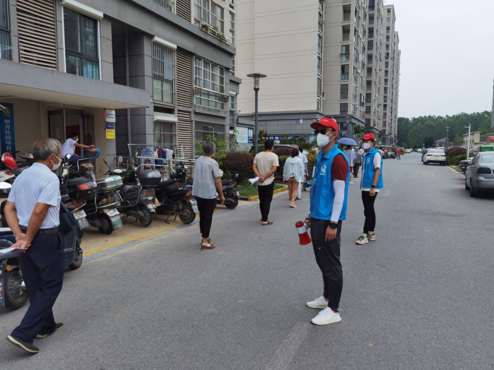 “請(qǐng)大家排好隊(duì),保持一米以上安全距離,不要造成人員聚集,請(qǐng)?zhí)崆皽?zhǔn)備好你的身份證……”志愿者不斷提醒居民注意。在翠月花園核酸采集點(diǎn),志愿者們穿梭在排隊(duì)人群中,邊安撫居民緊張情緒,邊引導(dǎo)居民即測(cè)即走。“雖然天氣很悶熱,工作量很大,但是我們有信心能保質(zhì)保量完成全小區(qū)核酸檢測(cè)任務(wù)?!彼麄儾活櫤韲邓粏。琅f熱情且耐心地回答居民的問(wèn)題,引導(dǎo)現(xiàn)場(chǎng)秩序。11日下午,雨淅淅瀝瀝下個(gè)不停。雖然避雨棚近在咫尺,但志愿者們面對(duì)風(fēng)雨寸步不離崗位,他們笑著說(shuō)道“這點(diǎn)風(fēng)雨算啥呀?”一周來(lái),志愿者們協(xié)助社區(qū)開(kāi)展了4次核酸檢測(cè),共檢測(cè)居民約12000人次。