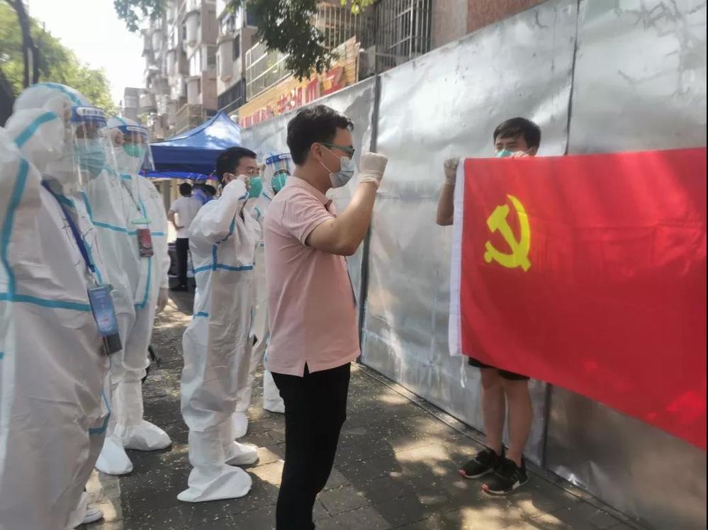 “城控集團(tuán)抗疫志愿服務(wù)行動(dòng)臨時(shí)黨支部”的旗幟從武塘社區(qū)再一次插上了廣儲(chǔ)社區(qū)的地界上。