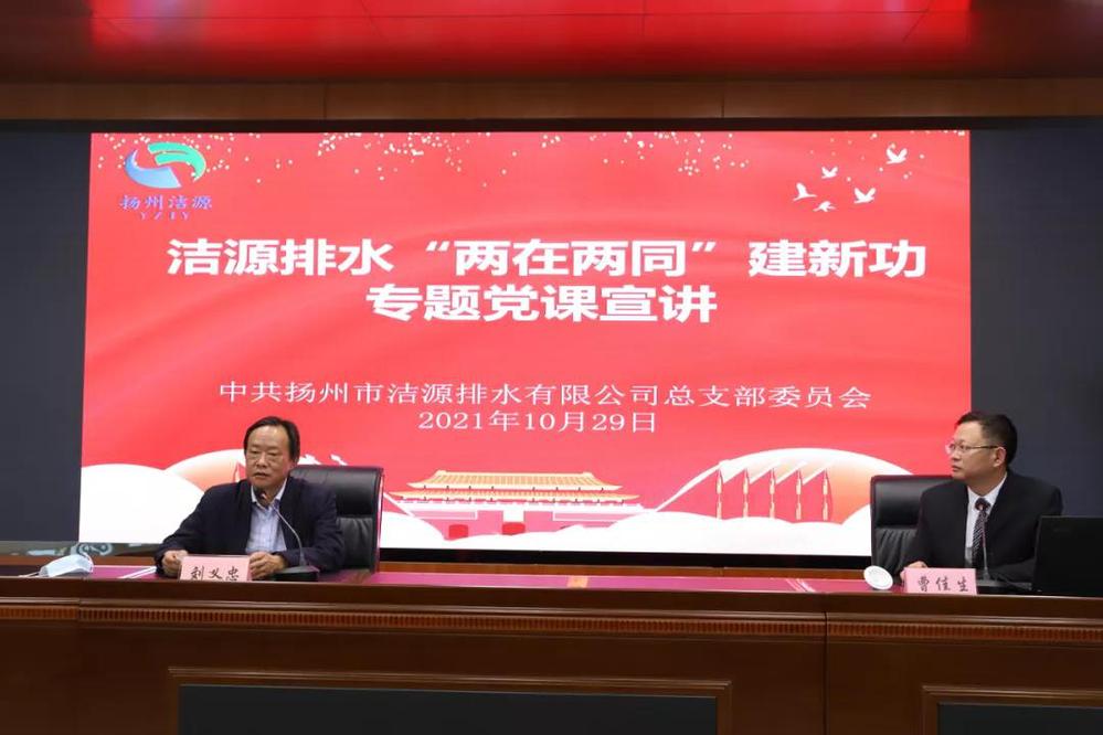 為進一步推動黨史學習教育深入開展,10月29日下午,潔源排水黨總支組織全體黨員、入黨積極分子及部分群眾代表,在公司五樓會議室組織開展了《“兩在兩同”建新功》專題黨課宣講活動。