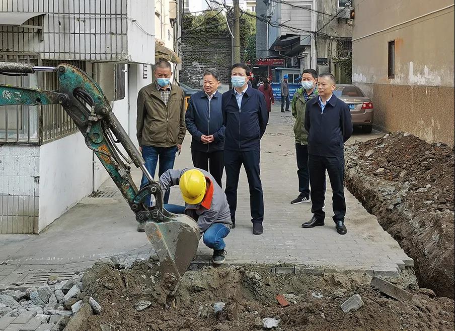 在施工現(xiàn)場(chǎng),夏正東一行詳細(xì)聽取了老舊管網(wǎng)改造工程情況和違章占?jí)赫墓ぷ鲄R報(bào),了解改造施工中的實(shí)際困難,檢查了現(xiàn)場(chǎng)新管道敷設(shè)進(jìn)度和新老管道碰接、置換的安全防范措施。