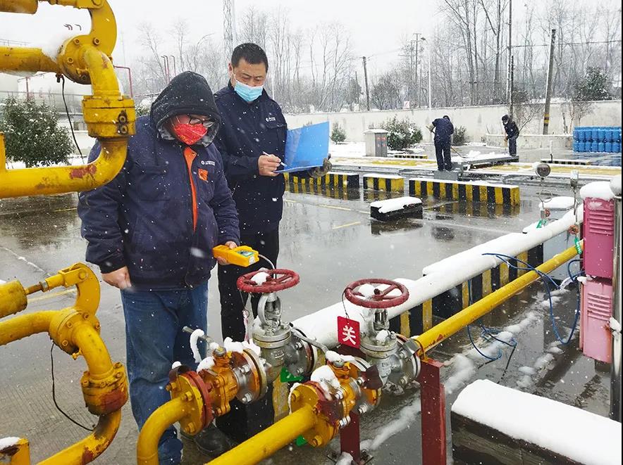 在楊廟液化氣場(chǎng)站,灌裝班組員工頂風(fēng)冒雪,堅(jiān)守崗位,在保證灌裝工作安全有序開(kāi)展的同時(shí),對(duì)場(chǎng)站設(shè)備設(shè)施,進(jìn)行新一輪巡查檢修工作,確保在雨雪天氣下,所有設(shè)備設(shè)施正常運(yùn)行。
