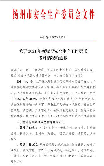 2021年,在市委市政府的正確領(lǐng)導(dǎo)下,城控集團(tuán)認(rèn)真貫徹落實(shí)習(xí)近平總書記關(guān)于安全生產(chǎn)重要論述,聚焦主體責(zé)任落實(shí),督查指導(dǎo)下屬企業(yè)開展安全生產(chǎn)工作;聚焦“一把手”,抓住關(guān)鍵少數(shù),第一責(zé)任人責(zé)任落實(shí)落細(xì)落到位;聚焦三年專項(xiàng)整治,大力推進(jìn)風(fēng)險(xiǎn)防控隱患治理,從根本上提升本質(zhì)安全;聚焦安全生產(chǎn)教育培訓(xùn),強(qiáng)化安全意識(shí)、責(zé)任意識(shí),促進(jìn)業(yè)務(wù)技能和業(yè)務(wù)水平提升,全年安全生產(chǎn)形勢(shì)穩(wěn)定有序,為全市社會(huì)經(jīng)濟(jì)高質(zhì)量發(fā)展助力。被市安委會(huì)評(píng)定為2021年度履行安全生產(chǎn)工作責(zé)任先進(jìn)單位。