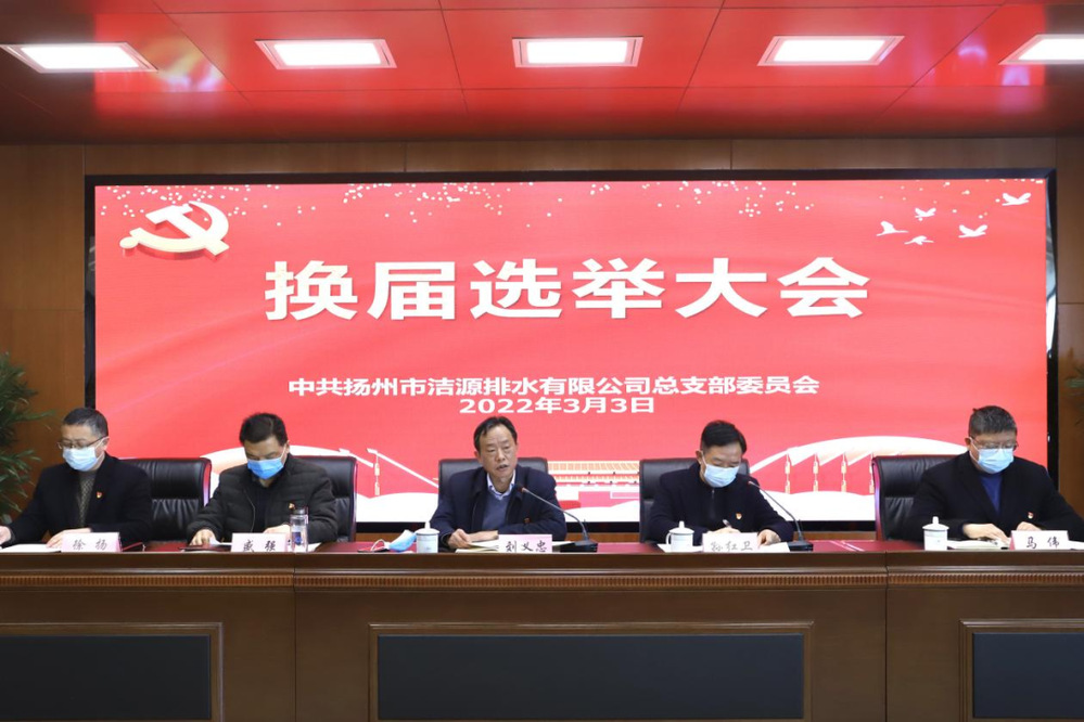 委員選舉結(jié)束后,召開了中共揚州市潔源排水有限公司第三屆總支部委員會第一次全體會議,選舉劉義忠同志為黨總支書記,孫紅衛(wèi)同志為黨總支副書記。