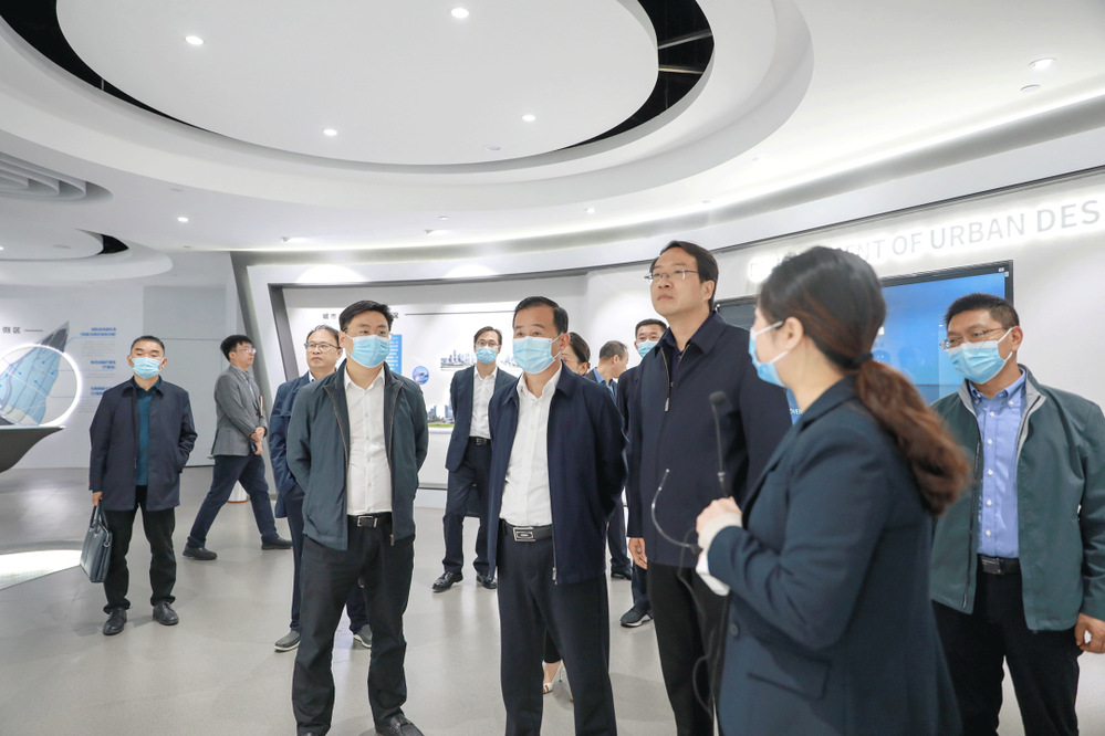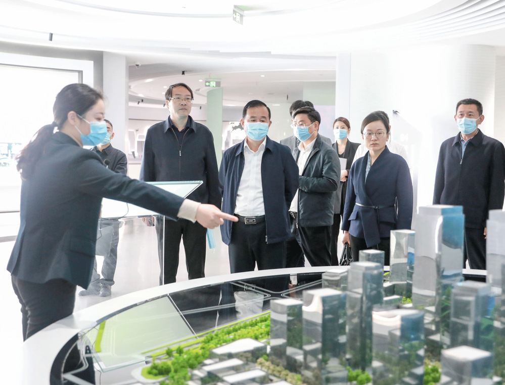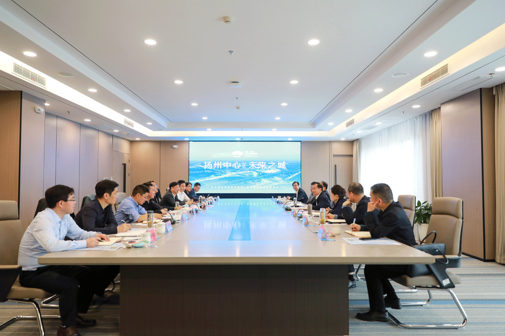 在生態(tài)科技新城城市展廳,葉善祥詳細(xì)了解生態(tài)科技新城的發(fā)展規(guī)劃,對生態(tài)科技新城高起點規(guī)劃、高標(biāo)準(zhǔn)建設(shè)、高品質(zhì)推進揚州新中心建設(shè)工作表示贊許。