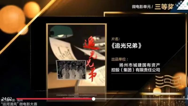 備受關(guān)注的第二屆中國(guó)·揚(yáng)州“運(yùn)河清風(fēng)”微電影大賽頒獎(jiǎng)活動(dòng)于6月19日在揚(yáng)州運(yùn)河大劇院舉行。本屆大賽由中國(guó)紀(jì)檢監(jiān)察雜志社、江蘇省紀(jì)委監(jiān)委、揚(yáng)州市紀(jì)委監(jiān)委、揚(yáng)州市委宣傳部共同主辦。大賽共征集到參賽作品1600余部,經(jīng)大賽組委會(huì)初評(píng)、復(fù)評(píng)、終評(píng)三輪評(píng)審,由城控集團(tuán)拍攝的《追光兄弟》榮獲大賽微電影單元三等獎(jiǎng)。
