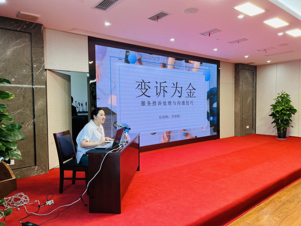 培訓特邀南京航空航天大學金城學院、南京城市職業(yè)學院禮儀導師李嬌嬌老師,作《變訴為金——服務投訴處理與溝通技巧》崗位業(yè)務專題講座。