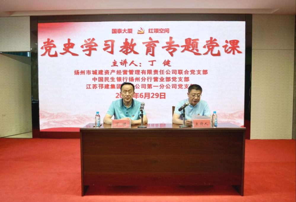 為進一步引導廣大黨員知史愛黨、知史愛國, 6月29日,在“七一”建黨節(jié)來臨之際,資產公司聯合黨支部聯合國泰大廈入住單位——中國民生銀行揚州分行營業(yè)部黨支部、江蘇邗建集團有限公司第一分公司黨支部,邀請市委黨校培訓處丁健處長在國泰大廈“黨建紅領空間”作《輝煌百年黨史及其啟示》專題授課。