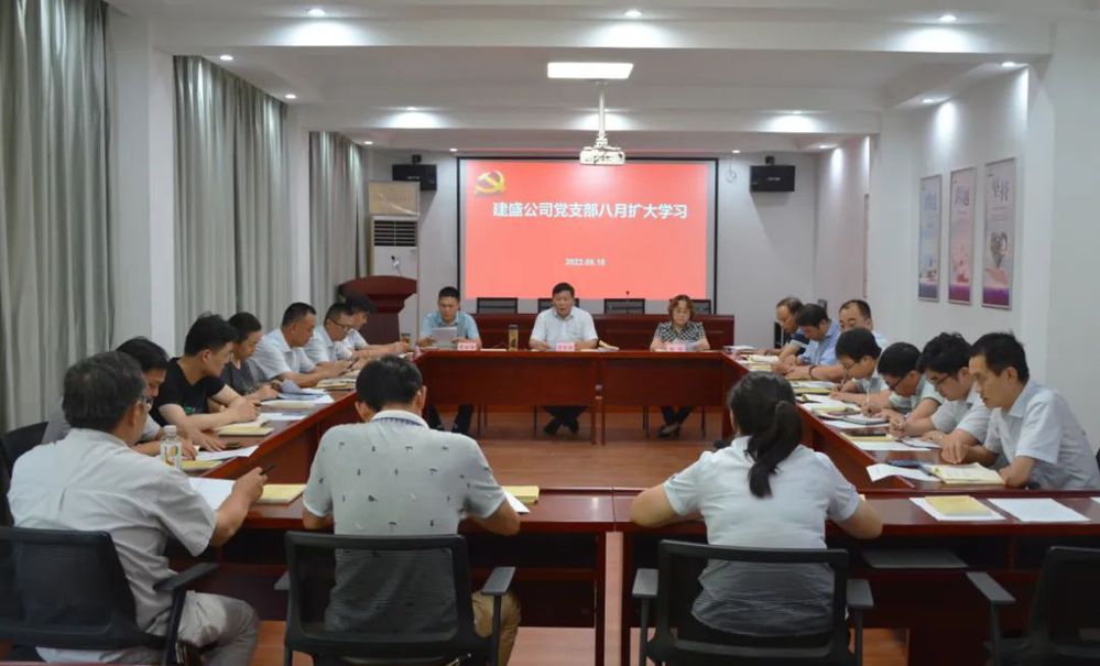 8月18日下午,建盛公司黨支部召開支部(擴(kuò)大)學(xué)習(xí)會。公司領(lǐng)導(dǎo)班子成員、中層干部、全體黨員和入黨積極分子參加會議。