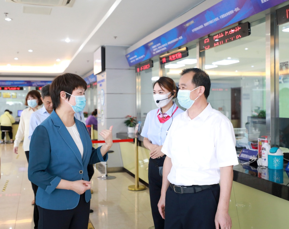 張寶娟一行來到揚州城控公用事業(yè)服務中心北區(qū)服務大廳,現(xiàn)場聽取了窗口服務的基本情況和業(yè)務范圍,詳細了解了“三網(wǎng)融合”窗口和“水、氣、卡”自助一體機的業(yè)務辦理流程。