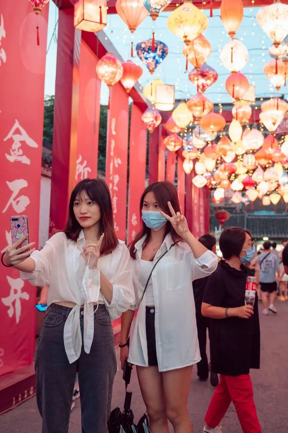 東城門樓上紅色帷幔、街巷揚州文化地標背景墻以及馥園廣場長廊燈會更是搖身成為市民游客的熱門打卡點,火遍各大社交平臺!