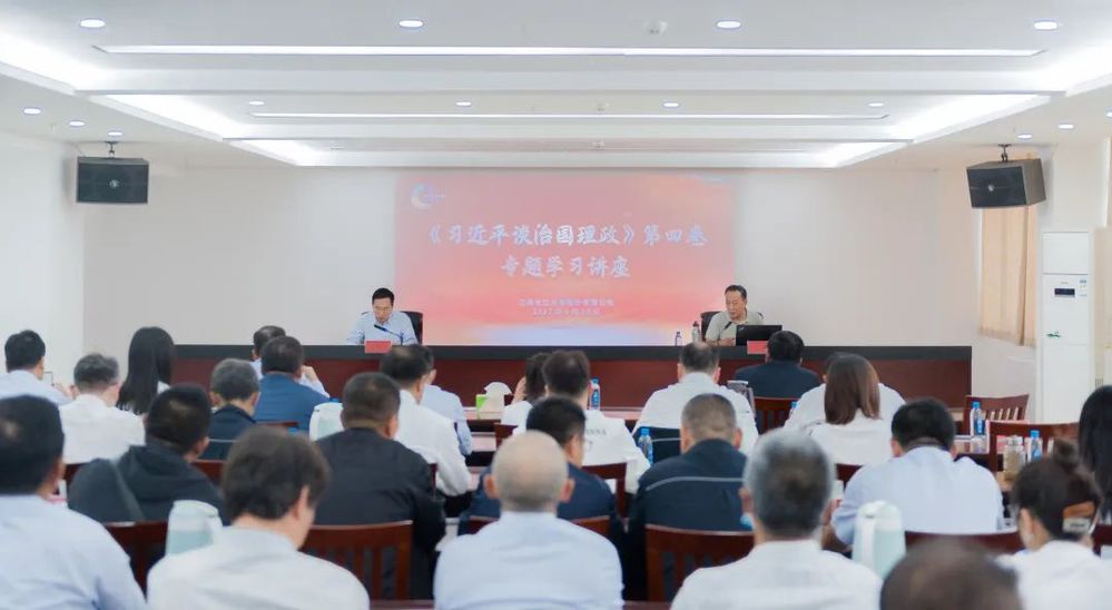 為深入學(xué)習(xí)貫徹習(xí)近平新時(shí)代中國特色社會主義思想,9月28日下午,長江水務(wù)公司舉辦《習(xí)近平談治國理政》第四卷專題學(xué)習(xí)講座,邀請揚(yáng)州市委黨校丁健處長講課,公司黨委班子成員、各支部書記、各部門主要負(fù)責(zé)人、黨員代表聆聽講課。城控集團(tuán)黨委委員、長江水務(wù)公司董事長張正斌主持活動(dòng)。