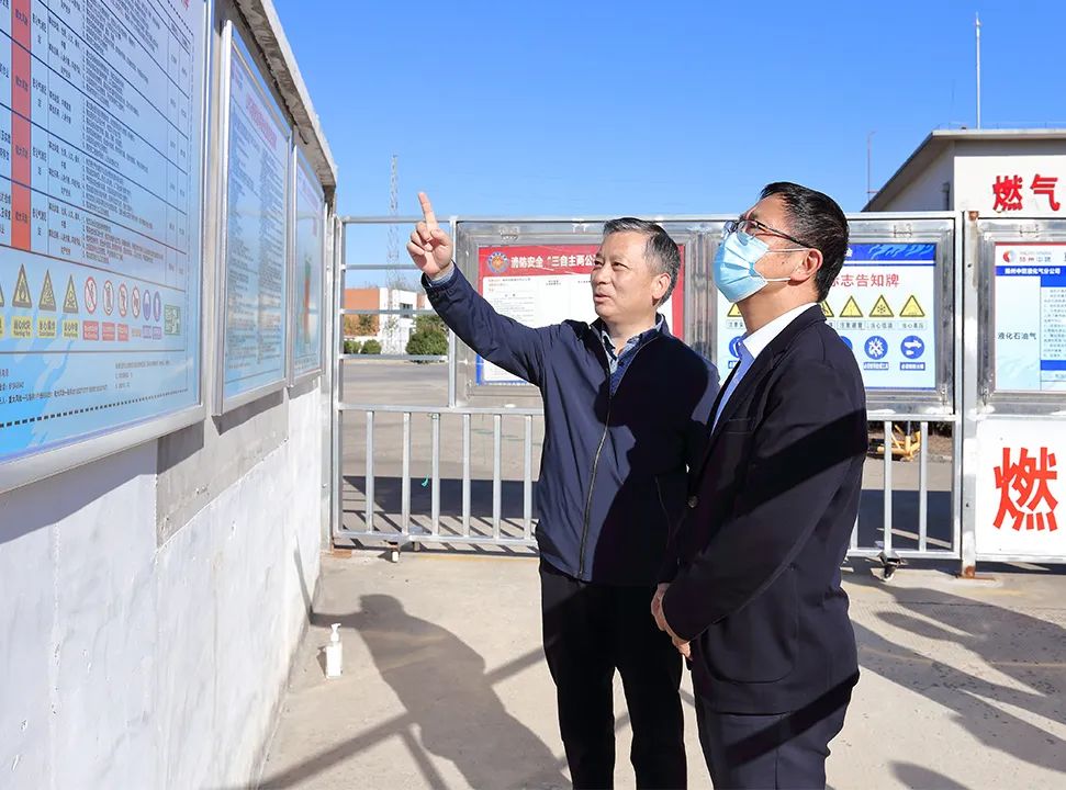在液化氣場站,湯衛(wèi)華認(rèn)真聽取了有關(guān)情況匯報,仔細(xì)檢查了儲罐區(qū)、灌裝區(qū)設(shè)備、消防設(shè)施和安全告知牌。湯衛(wèi)華要求,要按照規(guī)范精心操作,加密設(shè)備巡查巡檢,做好設(shè)備維護(hù)保養(yǎng),確保安全運行。