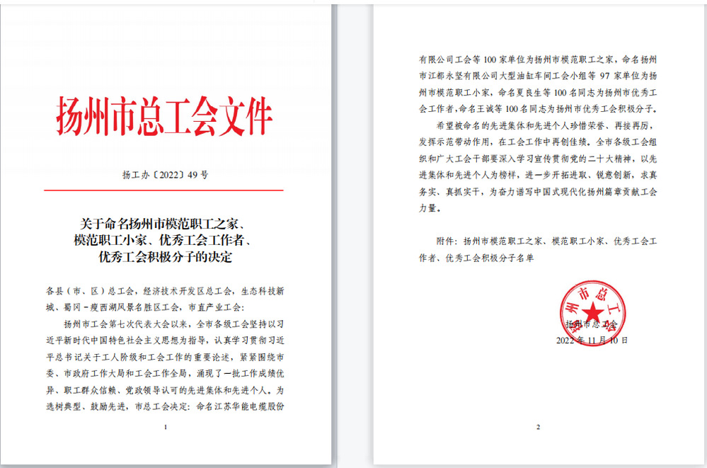 2022年,城建資產(chǎn)聯(lián)合基層工會(huì)緊緊圍繞公司年度中心任務(wù),團(tuán)結(jié)帶領(lǐng)廣大干部職工,積極致力于企業(yè)文化建設(shè)發(fā)展,以為職工謀福利為己任,扎實(shí)履行工會(huì)職能,關(guān)心關(guān)愛職工身心健康,秉承“干實(shí)事、辦好事、解難事”的宗旨,從“心”出發(fā),真正做職工貼心的“娘家人”。一份耕耘一份收獲,在全體職工齊心協(xié)力的努力下,城建資產(chǎn)聯(lián)合基層工會(huì)被揚(yáng)州市總工會(huì)授予“揚(yáng)州市模范職工之家”榮譽(yù)稱號(hào)。