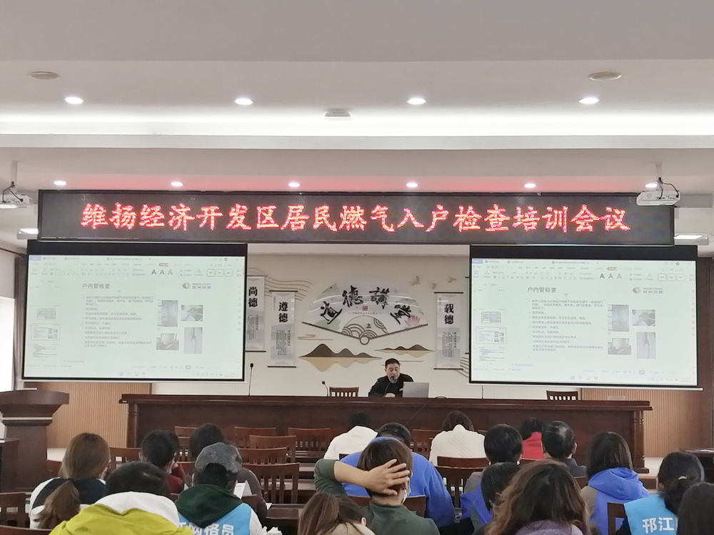 在朱塘社區(qū)會議室,來自維揚開發(fā)區(qū)所轄的社區(qū)網(wǎng)格員和樓棟長共50多人參加活動。藍焰融惠志愿者通過講解PPT、播放宣傳片的形式,從“如何進行燃氣安全自檢、用氣安全隱患分析、燃氣泄漏與事故發(fā)生的關聯(lián)度、用氣存在的不安全行為、燃氣泄漏應急處置措施”等方面進行了深入淺出的宣講。志愿者現(xiàn)場就大家提出的有關問題進行了答疑解惑,同時就附近商戶普遍關注的“瓶改管”工作做出了相應的宣傳和積極的回應。