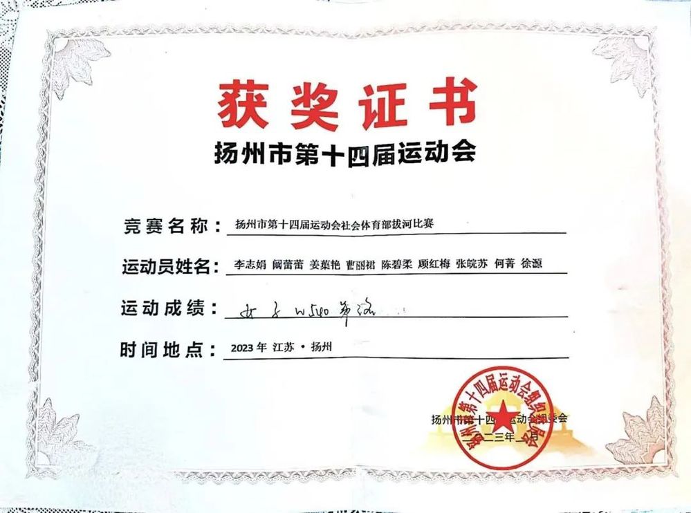 5月28日,揚(yáng)州市第十四屆運(yùn)動會社會體育部拔河比賽開幕, 城控集團(tuán)拔河隊(duì)首次出征,勇奪男子組亞軍、混合組亞軍和女子組季軍。