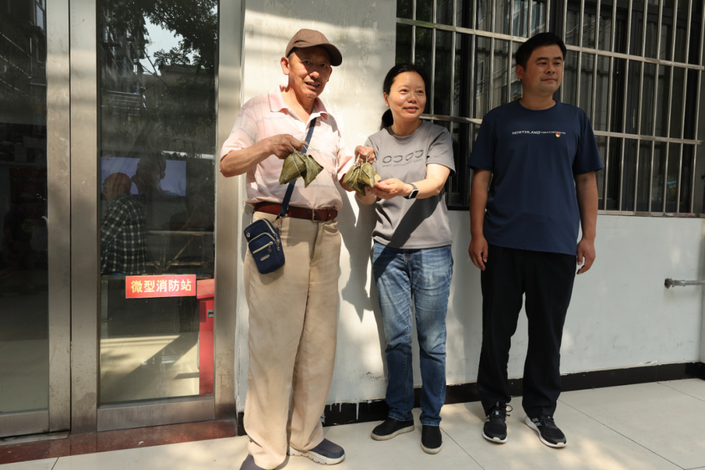 第三黨支部志愿者和社區(qū)工作人員分為兩組,將蒸煮好的近200個(gè)粽子分送到沙口社區(qū)困難家庭、獨(dú)居老人、重度殘疾人及孤寡老人家中,為他們送上慰問品及誠(chéng)摯的節(jié)日祝福。