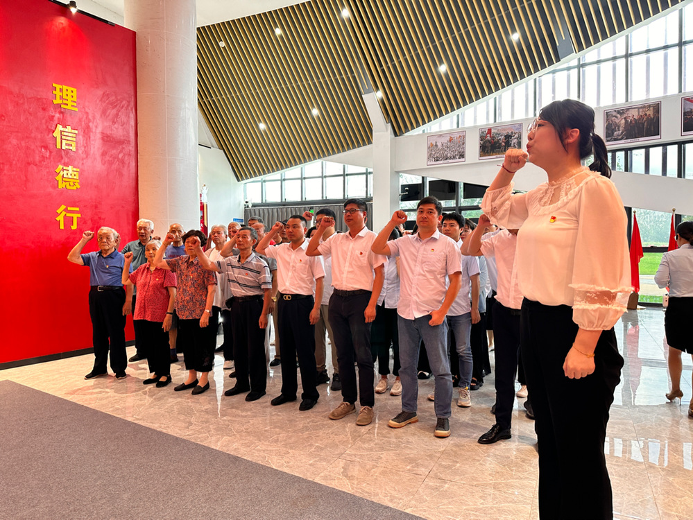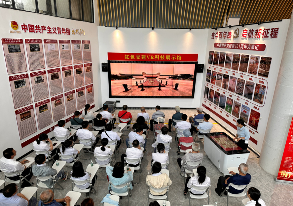 在紅色黨建VR科技展示館內(nèi),黨員集中觀看了紅色視頻,并在紅色講壇前重溫入黨誓詞。大家面對鮮紅的黨旗,緊握右拳,莊重地重溫入黨誓詞,進(jìn)一步堅定了入黨使命和奮斗初心。