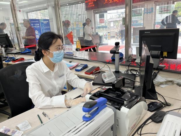 “十一”國慶當天,營業(yè)所大廳柜員吳玉瑩一早就提前到崗,整理好上班期間需要用的現(xiàn)金、票據(jù)。大廳正式進入營業(yè)時間后,吳玉瑩面帶微笑地迎接每一位進入大廳辦理業(yè)務(wù)的用戶,用熱情高質(zhì)的服務(wù)守護用戶歡樂祥和過節(jié)。