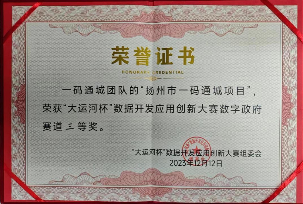今年9月起,揚(yáng)州市大數(shù)據(jù)管理局舉辦 “2023年‘大運(yùn)河杯’數(shù)據(jù)開(kāi)發(fā)應(yīng)用創(chuàng)新大賽”,由江蘇省大數(shù)據(jù)管理中心、江蘇大數(shù)據(jù)聯(lián)盟指導(dǎo),揚(yáng)州市發(fā)改委、工信局聯(lián)合主辦。大賽主題為“江河融慧好地方 數(shù)聚賦能新發(fā)展”,設(shè)4個(gè)賽道,其中數(shù)字政府賽道設(shè)一等獎(jiǎng)1名、二等獎(jiǎng)3名、三等獎(jiǎng)6名。大賽共吸引全國(guó)180支團(tuán)隊(duì)、396位數(shù)字人才報(bào)名,在12月12日決賽中,市民卡公司“揚(yáng)州市一碼通城項(xiàng)目”榮獲“大運(yùn)河杯”數(shù)據(jù)開(kāi)發(fā)應(yīng)用創(chuàng)新大賽數(shù)字政府賽道三等獎(jiǎng)。