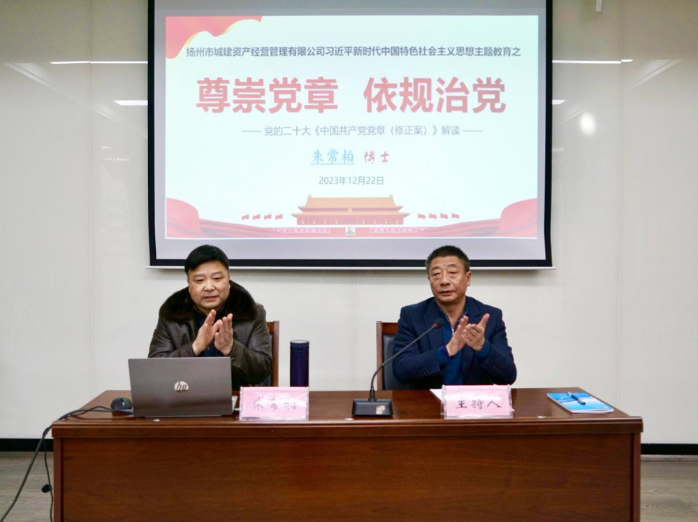 揚州大學法學博士、副教授、碩士生導師朱常柏博士以《尊崇黨章 依規(guī)治黨》為題,為大家進行了學黨章專題輔導,并根據(jù)新修訂的《中國共產(chǎn)黨章程》,對“黨章的地位與作用”“黨章的結(jié)構(gòu)與內(nèi)容”“黨章修正若干要點”三個方面作了重點解讀。朱博士講解風格生動幽默,內(nèi)容結(jié)構(gòu)脈絡(luò)清晰,理論與實際相聯(lián)系、歷史與現(xiàn)實相對照,引導我們要時刻做到心中有黨、在黨言黨、對黨忠誠,進一步增強尊崇黨章、遵守黨章、維護黨章的自覺性和堅定性,真正把黨章黨規(guī)內(nèi)化于心、外化于行。