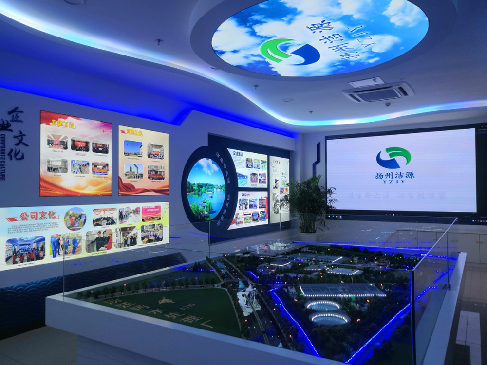 揚州潔源節(jié)水科教館硬件設施由揚州潔源環(huán)境公司傾力打造,共設有1個總館和3個分館。室內(nèi)展廳內(nèi)設有2套廠區(qū)布局沙盤、3套宣傳大屏、2套宣傳滾動屏、1套人機互動觸摸屏、1套交互式答題機等多媒體設施。室外設施主要涵蓋污水預處理、生物處理和提標段處理、中水回用等污水處理設施。