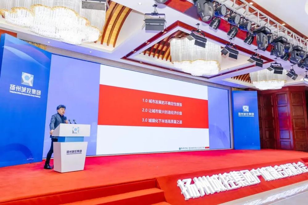 張思忠在致歡迎辭中對參會的嘉賓表示誠摯歡迎和衷心感謝,他表示,城控集團將以科促產(chǎn),圍繞智慧城市、能源產(chǎn)業(yè)、循環(huán)經(jīng)濟,以“新制造”“新業(yè)態(tài)”催生新質(zhì)生產(chǎn)力;將以產(chǎn)興城,促進創(chuàng)新鏈產(chǎn)業(yè)鏈資金鏈人才鏈深度融合,助力產(chǎn)業(yè)科創(chuàng)名城建設(shè);將以城聚人,細化民生實事的“施工圖”,精心擘畫“美麗揚州”宜居藍圖;將以人興業(yè),全方位開展校企合作,用高品質(zhì)資源供給讓更多人才“近悅遠來”,為推動中國式現(xiàn)代化揚州新實踐打頭陣、挑重擔、作貢獻。