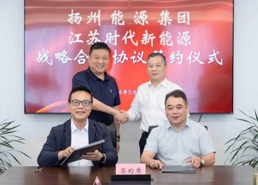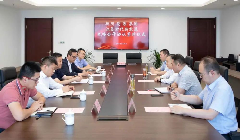 5月29日下午,揚(yáng)州能源集團(tuán)與江蘇時代新能源科技有限公司簽訂發(fā)展合作框架協(xié)議,城控集團(tuán)副總經(jīng)理、能源集團(tuán)董事長孔德存與寧德時代區(qū)域總經(jīng)理陳凌出席簽約儀式。