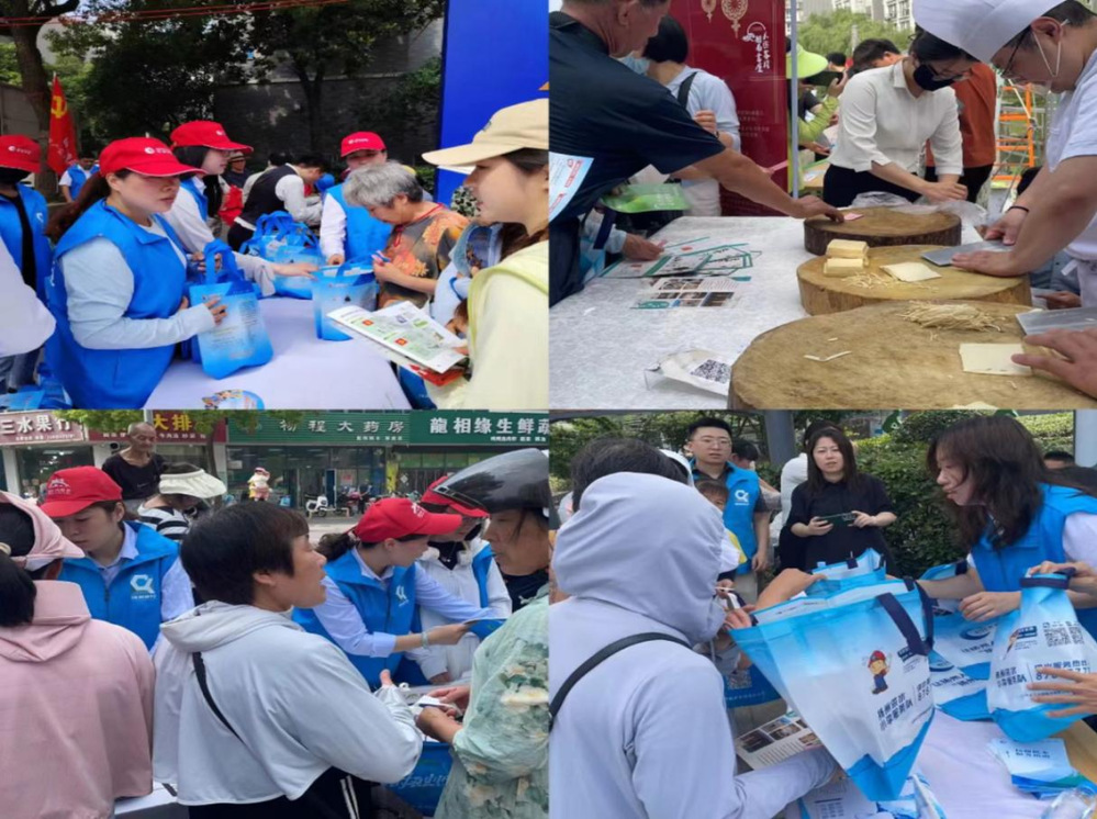 來自城控集團(tuán)本部、揚(yáng)州中燃、長江水務(wù)、供熱公司、市民卡公司、名城公司和供電公司約60名青年志愿者齊聚小區(qū)中心廣場,他們頂著炎炎夏日,現(xiàn)場設(shè)立服務(wù)臺,擺放宣傳戧牌。志愿者們守在服務(wù)臺前,仔細(xì)解答居民關(guān)心的生活安全問題,登記服務(wù)需求信息;穿梭于人群當(dāng)中,引導(dǎo)居民參觀宣傳戧牌,用生動具體的案例向居民宣講用氣、用水、用電、用熱安全常識;向居民發(fā)放安全知識手冊和宣傳生活垃圾分類常識。還有的志愿者上門為居民提供燃?xì)獍矙z、自來水檢測、電力安全檢查;提供公交卡現(xiàn)場充值、卡套免費(fèi)更換服務(wù)。名城公司長樂客棧的廚師志愿者為現(xiàn)場居民提供免費(fèi)切干絲、剁肉泥等服務(wù)。活動現(xiàn)場秩序井然、氣氛熱烈。