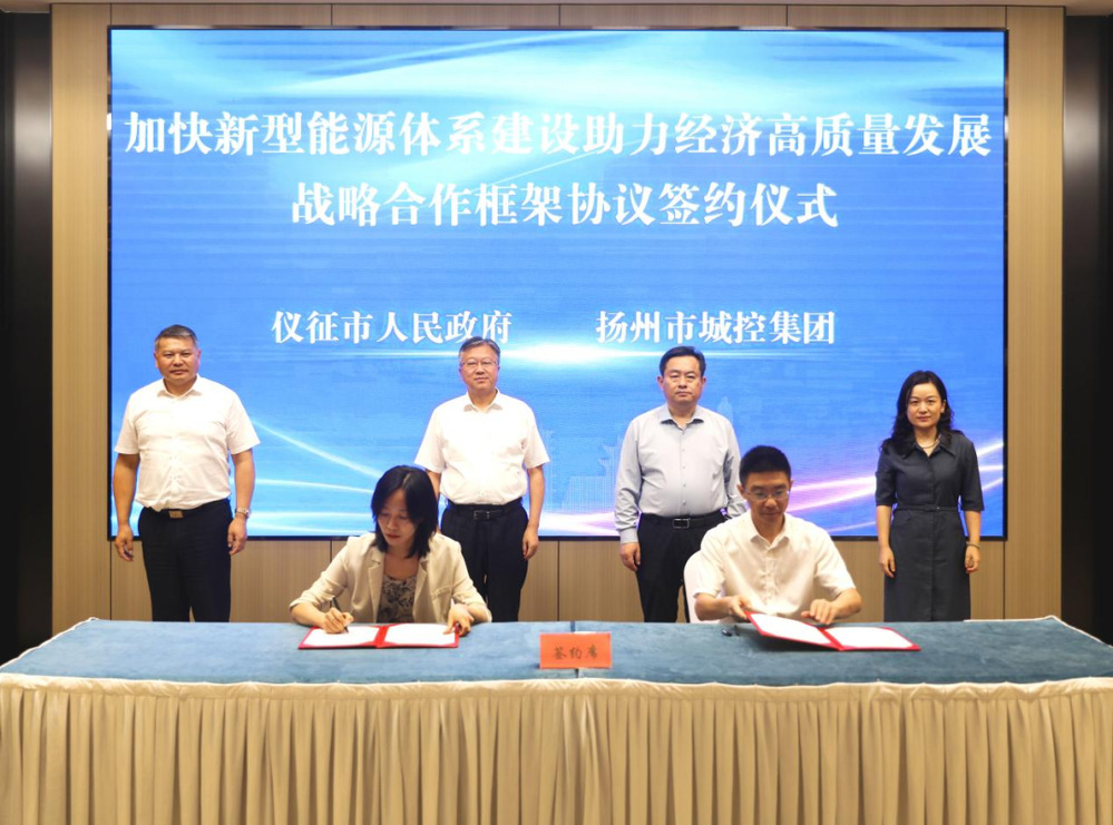 簽約儀式上,儀征市副市長俞蕾與城控集團(tuán)黨委副書記徐飛代表雙方簽訂了《“加快新型能源體系建設(shè) 助力經(jīng)濟(jì)高質(zhì)量發(fā)展”戰(zhàn)略合作框架協(xié)議》;儀征城發(fā)集團(tuán)與揚(yáng)州能源集團(tuán)簽訂了《加快新型能源體系建設(shè)意向合作協(xié)議》。