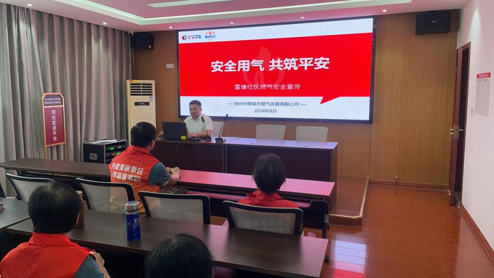 在社區(qū)會議室,揚州中燃“藍(lán)焰”志愿者還為即將使用天然氣的莊臺居民,帶去了一場燃?xì)獍踩褂弥黝}講座,對燃?xì)獍踩WR、夏季安全用氣注意事項、燃?xì)馐鹿试蚍治龅冗M(jìn)行了詳細(xì)的講解。