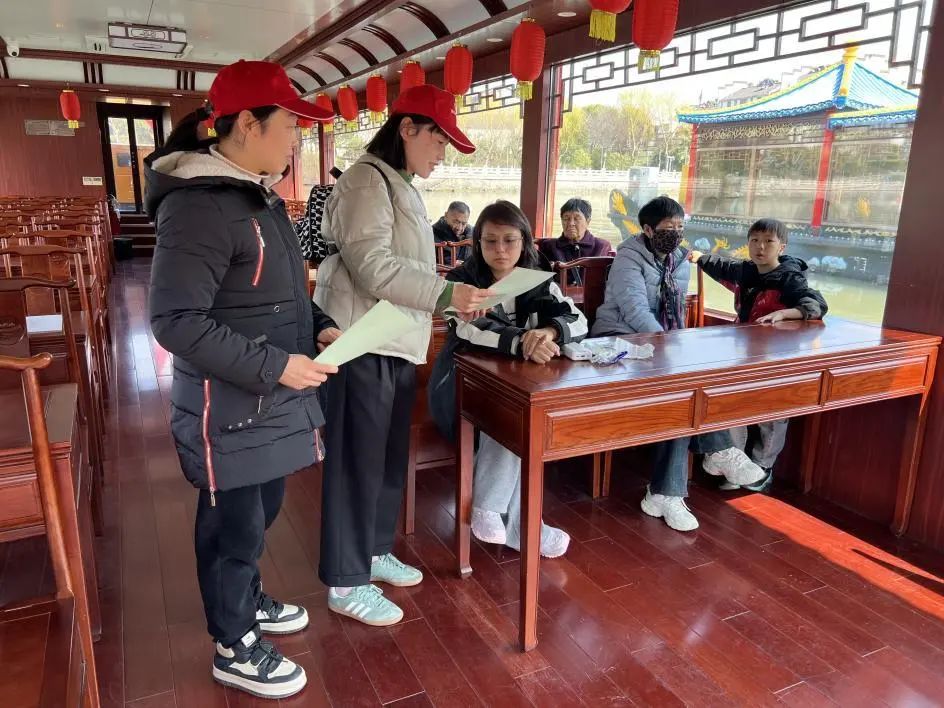 3月19日下午,志愿者們?cè)缭鐏?lái)到碼頭,登上游船向游客發(fā)放宣傳資料,詳細(xì)介紹“世界水日”的由來(lái)、意義和節(jié)約用水的重要性,呼吁大家關(guān)注水資源保護(hù)。同時(shí),志愿者們深入講解了古運(yùn)河的歷史文化,讓游客們?cè)谛蕾p美景的同時(shí),感受到古運(yùn)河的獨(dú)特魅力。志愿者們還手持垃圾鉗、垃圾袋,沿著河岸,仔細(xì)清理河面上的漂浮物和岸邊的垃圾,他們的行動(dòng)不僅美化了河道環(huán)境,也為周邊居民樹(shù)立了榜樣。