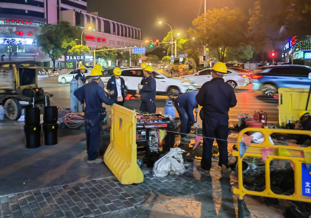 此次改造工程任務(wù)艱巨,停氣范圍廣、焊接工作量大,對(duì)施工組織和技術(shù)保障提出了極高要求。為了將施工對(duì)市民生活和城市交通的影響降至最低,揚(yáng)州中燃精心策劃,組織了兩支經(jīng)驗(yàn)豐富的施工隊(duì)伍同時(shí)施工,保障施工流程順暢高效進(jìn)行。5月28日21點(diǎn),當(dāng)城市逐漸進(jìn)入夢(mèng)鄉(xiāng),施工人員們精神抖擻地投入到緊張的施工中。他們克服夜間作業(yè)視線(xiàn)差、體力消耗大等困難,嚴(yán)格按照施工規(guī)范和安全標(biāo)準(zhǔn),爭(zhēng)分奪秒推進(jìn)焊接、新舊管道切換等工作。經(jīng)過(guò)全體施工人員的不懈努力,至次日清晨6點(diǎn)完成改造、恢復(fù)供氣,確保周邊居民能夠正常使用燃?xì)狻?/p>