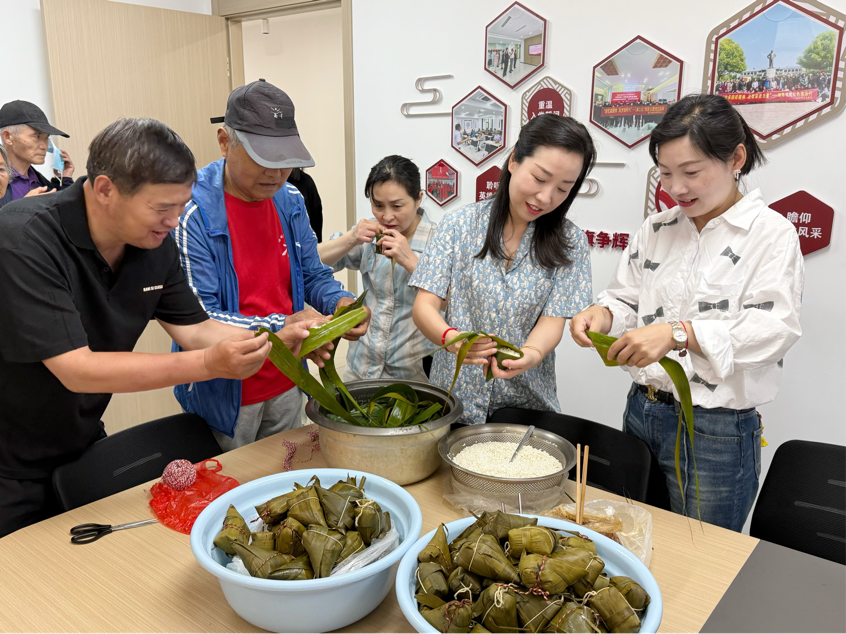 活動現(xiàn)場,志愿者們早早地將提前泡好的糯米、紅棗、粽葉等材料整齊擺放在桌上。大家圍在一起,各自拿出看家本領(lǐng),捋粽葉、做漏斗狀、填糯米、壓緊實(shí)、封口、扎捆,巧手翻飛,不一會兒,形態(tài)各異的粽子便擺滿了桌子。活動現(xiàn)場歡聲笑語不斷,粽葉的清香與大家的熱情交織在一起,濃濃的節(jié)日氛圍撲面而來。志愿者們將粽子遞到老人們手中,并與他們親切交談,詳細(xì)詢問他們的身體狀況和生活情況,叮囑老人們要注意天氣變化,保重身體。老人們紛紛表示:“感謝長江水務(wù)和社區(qū)對我們的關(guān)心,我們能在端午節(jié)吃到這么香甜的粽子,心里特別溫暖!”