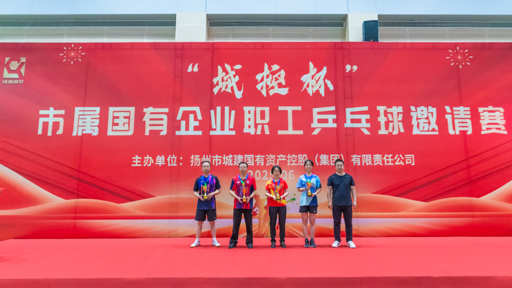 經(jīng)過一天的激烈角逐,賽事名次逐一揭曉。城控集團(tuán)1隊(duì)、運(yùn)河文投集團(tuán)代表隊(duì)、城控集團(tuán)2隊(duì)和聯(lián)環(huán)集團(tuán)代表隊(duì)分別獲得混合團(tuán)體賽的冠軍、亞軍、季軍;城控集團(tuán)黃旭群、秦葛翔、運(yùn)河文投集團(tuán)佘晨輝和城控集團(tuán)董冰分別獲得男子單打冠軍、亞軍、季軍;運(yùn)河文投集團(tuán)童小凌、聯(lián)環(huán)集團(tuán)嚴(yán)梅花、城控集團(tuán)周恩紅和產(chǎn)發(fā)集團(tuán)王景分別獲得女子單打冠軍、亞軍、季軍。