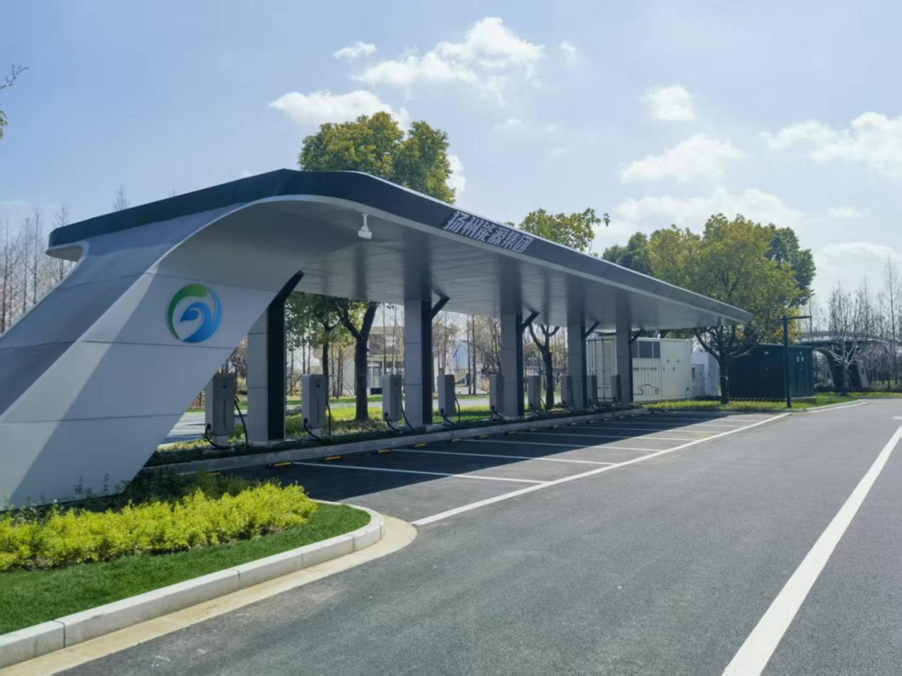 該綜合能源站位于“運河十里”停車場,緊鄰揚州東區(qū)SM廣場,共配置光伏系統(tǒng)30.48KWp、618KWh一體式儲能柜1套和快充樁22個、超充樁2個,其中,2個超充樁具備最大功率600KW充電能力,一輛家用新能源汽車最快可在10分鐘內(nèi)充電80%以上,有效提升用戶充電體驗。