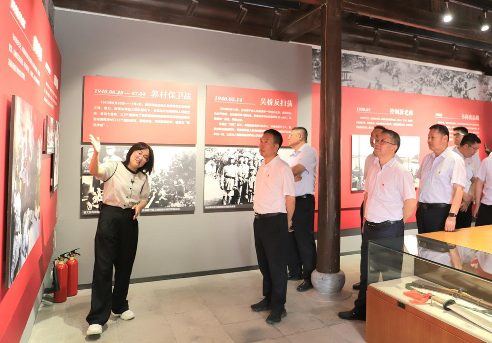 紀(jì)念館內(nèi),泛黃的史料呈現(xiàn)著斑駁的抗戰(zhàn)圖景。跟隨講解員的細(xì)致講述,大家詳細(xì)了解了陳毅、粟裕率領(lǐng)新四軍在此建立蘇北指揮部的歷史脈絡(luò),系統(tǒng)學(xué)習(xí)了新四軍在蘇北抗戰(zhàn)歷程與革命事跡。觀過(guò)程中,黨員們不時(shí)駐足于作戰(zhàn)地圖前,凝視著戰(zhàn)士用過(guò)的槍械、村民支援的布鞋,在以少勝多、軍民同心的史料紀(jì)實(shí)中,深切感悟“聽(tīng)黨指揮、敢打必勝”的鐵軍精神。
