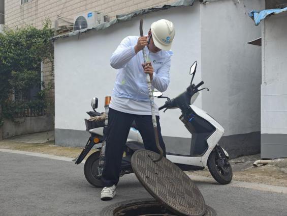 一路上,他們對(duì)沿途污水井一一進(jìn)行檢查,哪里井蓋出現(xiàn)破損松動(dòng)了,哪里井缺少防墜網(wǎng),哪里井存在混接都要做好記錄,及時(shí)上報(bào);遇見施工區(qū)域,他們還會(huì)仔細(xì)核查是否有工地井點(diǎn)降水等違規(guī)排放進(jìn)入污水管網(wǎng),并著重檢查管道是否出現(xiàn)淤積,堵塞,過水不暢等情況。