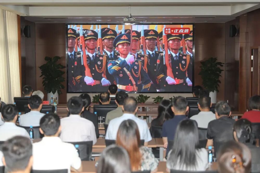 集中觀看現(xiàn)場氣氛莊重肅穆,大家全神貫注地觀看直播,認真聆聽習(xí)近平總書記重要講話,深刻感悟抗戰(zhàn)勝利的偉大意義和歷史啟示。當國旗護衛(wèi)隊邁著鏗鏘步伐走來,當鮮艷的五星紅旗冉冉升起,當新型裝備方隊展示大國重器時,大家不由涌現(xiàn)出對祖國的深情熱愛和崇敬之情,同時為國家科技的飛速發(fā)展和人民軍隊的強盛軍威感到無比驕傲和自豪。