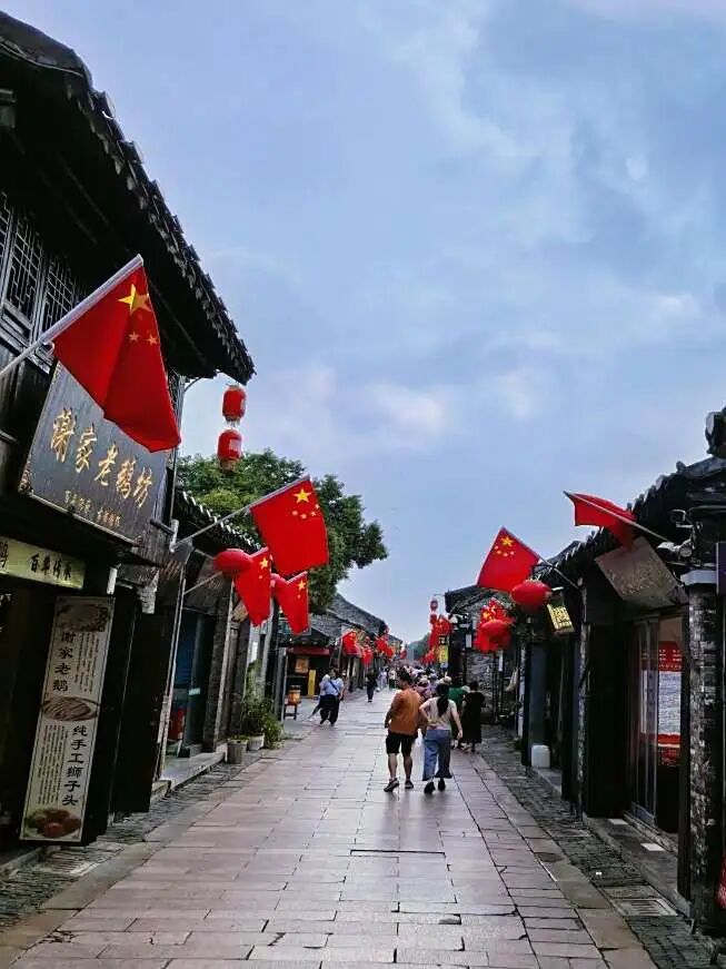 氛圍營造工程以紅動東關(guān)為主題,在沿街路燈桿、商鋪門前有序懸掛鮮艷五星紅旗。一面面紅旗與古街的歷史肌理交織,形成紅映古街、家國情長的喜慶畫卷,讓家國情懷浸潤每處角落。