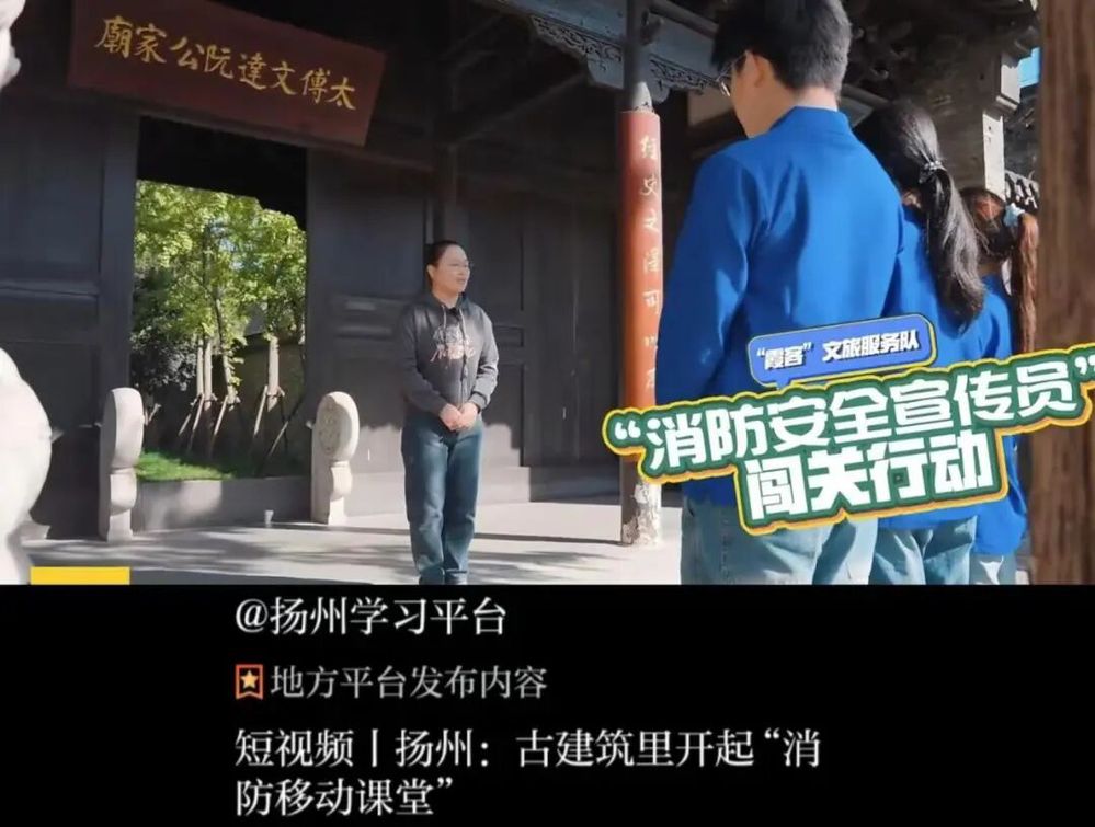 名城旅發(fā)公司聯(lián)合揚州職業(yè)技術(shù)大學(xué)、揚州市消防救援支隊出品的文保古建筑消防安全宣傳視頻,11月10日,正式被國家級平臺“學(xué)習(xí)強(qiáng)國”APP錄用發(fā)布。作為全國“安全生產(chǎn)月”活動的特色內(nèi)容,該視頻聚焦揚州珍貴文物古建筑的消防安全核心需求,以直觀生動的影像語言,清晰講解火災(zāi)風(fēng)險隱患、日常防范要點及應(yīng)急處理措施,實現(xiàn)知識性、科普性與警示性的有機(jī)統(tǒng)一。視頻通過權(quán)威平臺的廣泛傳播,既展現(xiàn)了企業(yè)履行安全生產(chǎn)主體責(zé)任、守護(hù)城市歷史文脈的擔(dān)當(dāng),更創(chuàng)新了“政、校、企”協(xié)同共筑文物安全防線的有效模式,讓安全理念深入人心。