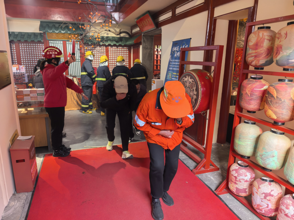 首先,組織參訓(xùn)人員進(jìn)行了電氣火災(zāi)滅火疏散實(shí)操演練,模擬場(chǎng)景為東關(guān)街98號(hào)冬榮園發(fā)生火情,當(dāng)班人員發(fā)現(xiàn)并大聲呼救、報(bào)警,醫(yī)療救護(hù)組人員接到應(yīng)急預(yù)案啟動(dòng)指令后攜帶應(yīng)急救護(hù)物資,對(duì)現(xiàn)場(chǎng)受傷人員進(jìn)行了臨時(shí)救護(hù)。同時(shí),滅火組第一時(shí)間趕赴微型消防站,穿戴消防戰(zhàn)斗服,使用滅火器進(jìn)行滅火,演練過(guò)程中,隊(duì)員們聽(tīng)從指揮、統(tǒng)一調(diào)動(dòng)、密切配合,充分檢驗(yàn)了員工及商戶面對(duì)電氣火災(zāi)的應(yīng)急處置能力和協(xié)同作戰(zhàn)水平。